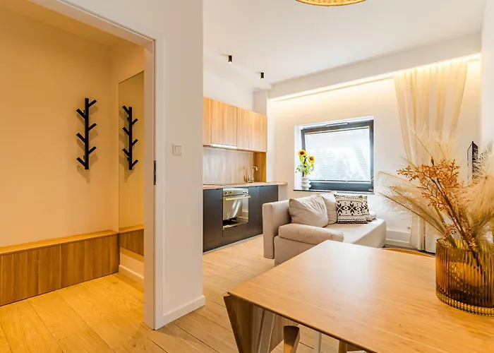 Здесь обустроена мини-кухня, а также доступен холодильник и духовка. Гости могут пообедать в ресторане Zatoka Aniolow, который находится на расстоянии 5-минутной прогулки. На расстоянии всего 250 метров от этого места находится ближайшая автобусная остановка - Al. sw. Jakuba IV. Апартаменты подойдут для детей, так как предлагают игровую площадку и крытую игровую зону.